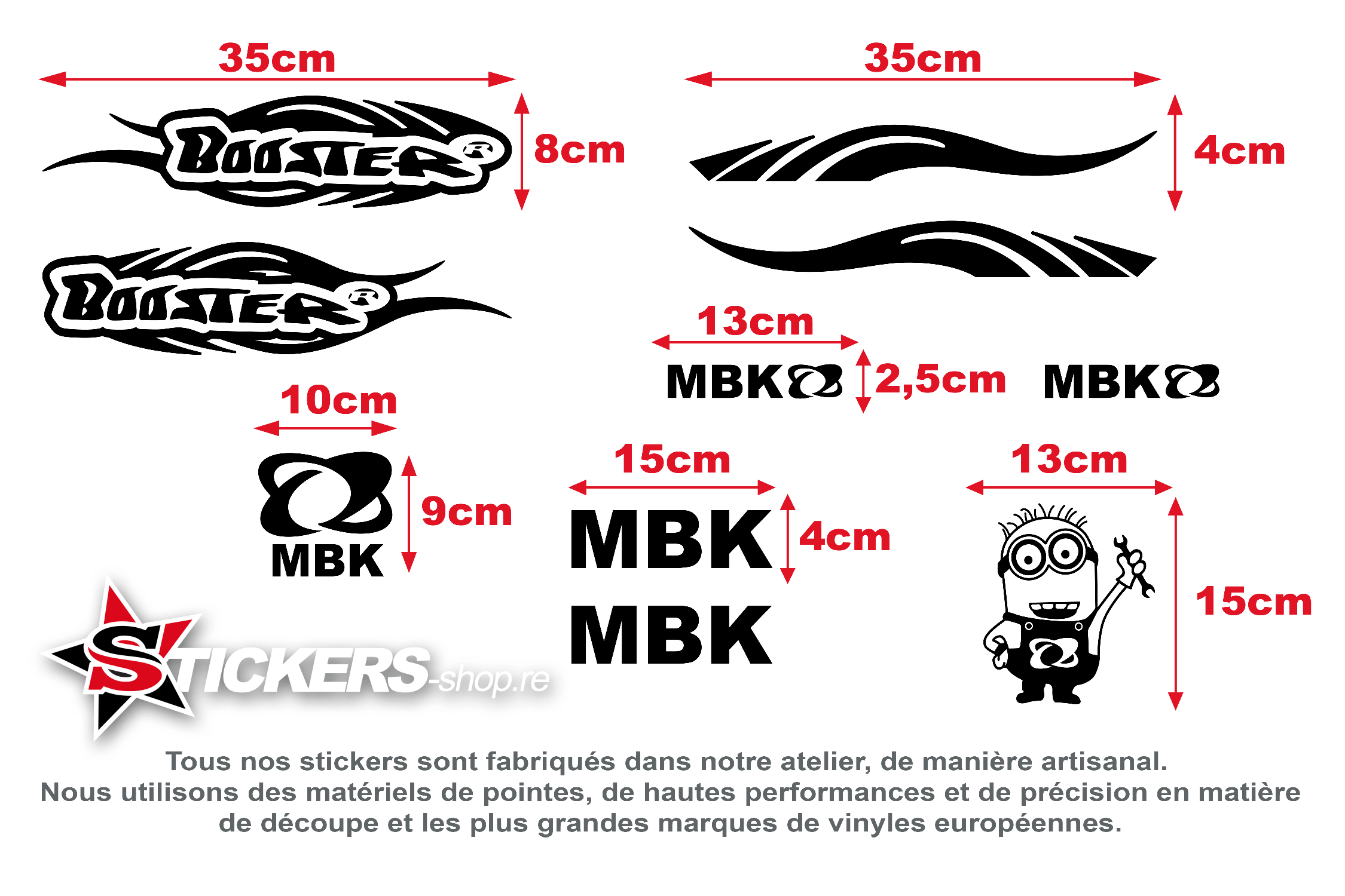 1 MBK (Lettrages + logos) de formats: 10cm x 9cm;